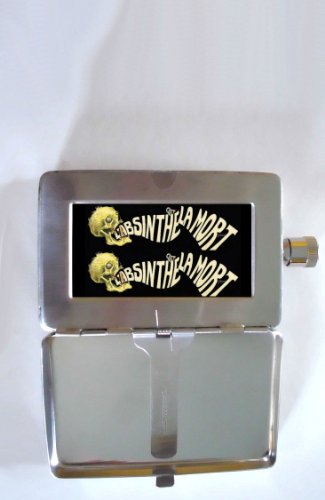 ABSINTHE SKULL DEATH VINTAGE FRANCE ART 2oz Flask Cigarette Case ID Wallet Details